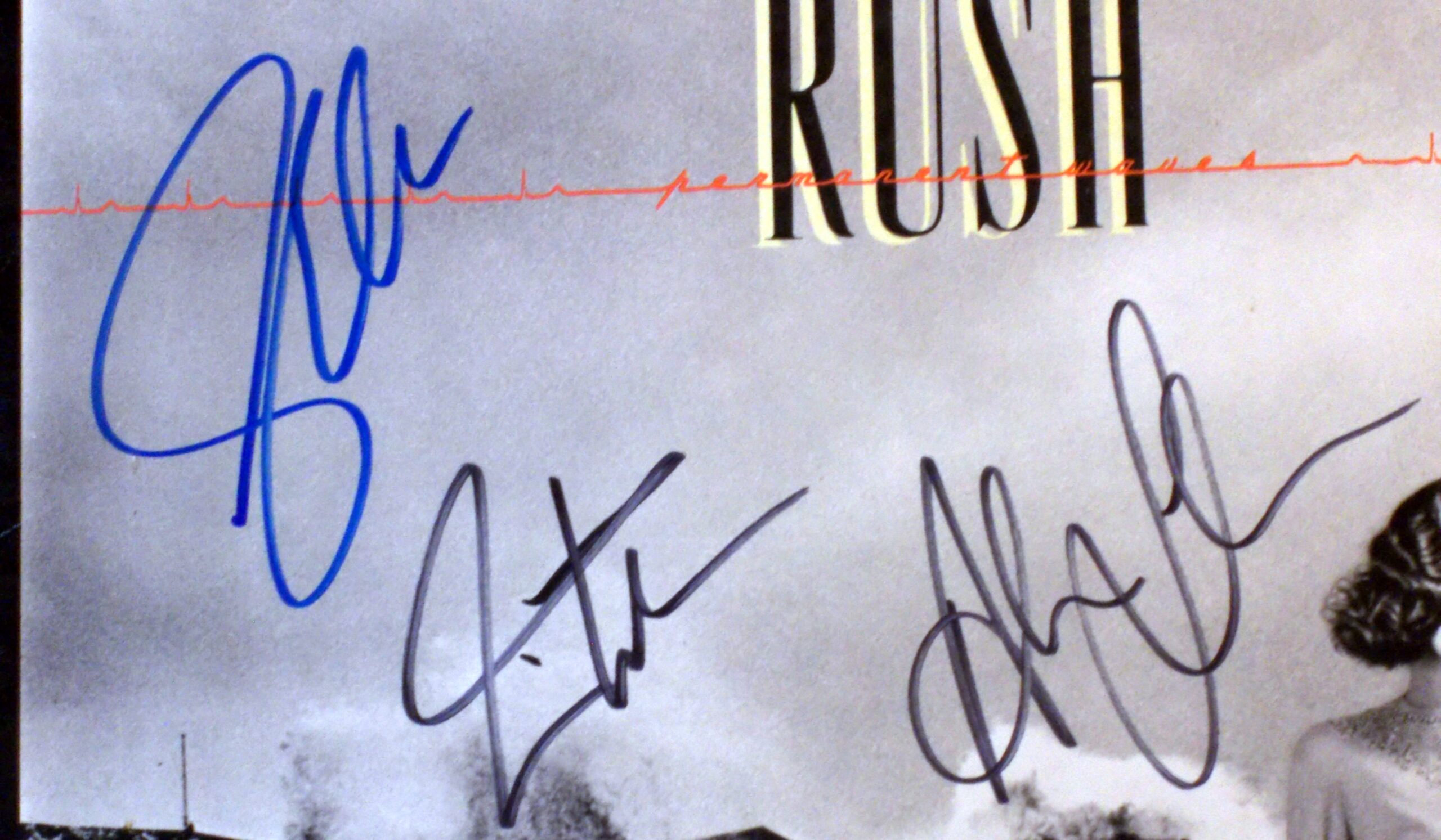 Permanent Waves LP album cover autographed by the group members: recently deceased Geddy Lee, Neil Peart and Alex Lifeson. I really good condition. Inside sleeve and original record are in tact. The cover is double matted to 16×20 with part of the record showing, framed and ready to hang. Comes with a certificate of authenticity from a board certified and court approved forensic handwriting examiner that worked for the secret service as a questioned document examiner. And it is guaranteed for life.